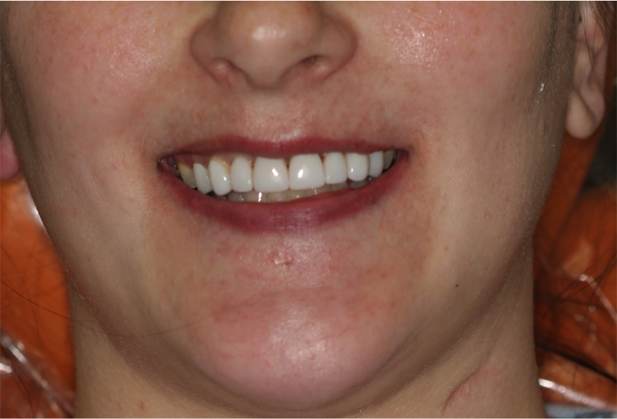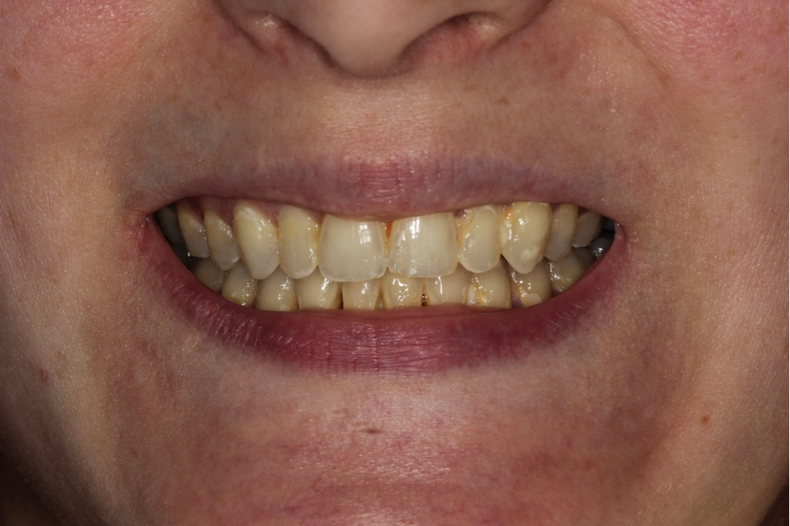 This patient came to us with several teeth that were badly discolored. She had tried bleaching them for several years and never got the result that she wanted. Her staining and discoloration were intrinsic and deep within the tooth. She wanted white teeth we provided her with some porcelain veneers and some crowns for her top teeth. She now wants to have her bottom teeth corrected to match her top.