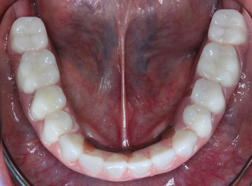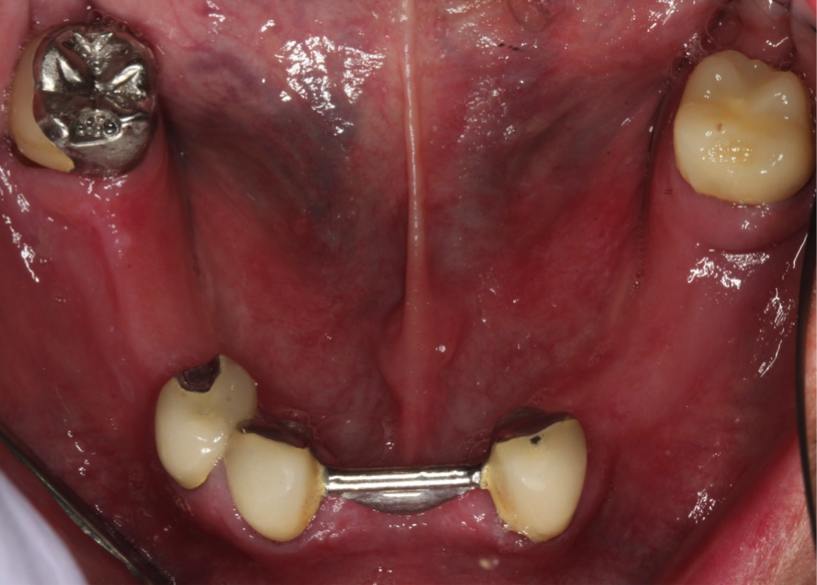This is what we can do for you! This patient came to us with a few teeth that had crowns that were in bad shape and failing. We placed several implants in his bottom jaw and made him an implant bridge that restored all his teeth. Can you see the difference in how his teeth look?. We also had to fabricate him some gum tissue to make up for the amount of bone and gum he had previously lost.