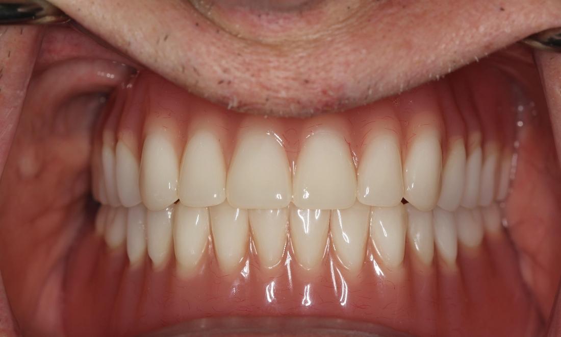 This patient came to us because he wanted to have implant dentures made as he was having no success with his dentures of several years. With this patient, we worked with a local oral surgeon to have the implants placed and we made him his final denture teeth. He has been very happy with the results!